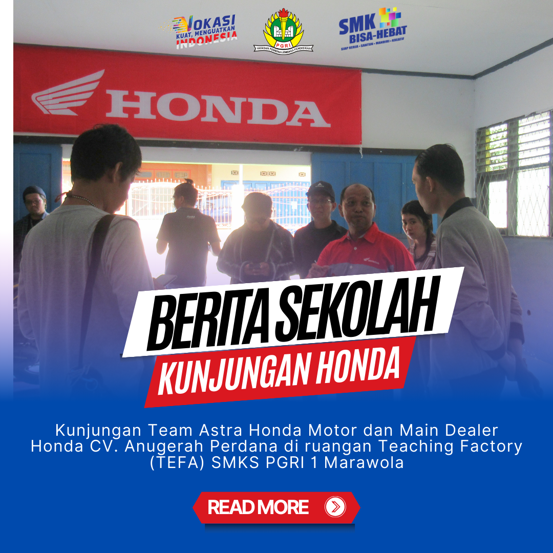 Sigi, 28 September 2024 – SMKS PGRI 1 Marawola meresmikan Pos AHASS Teaching Factory (TEFA) sebagai sarana peningkatan keterampilan siswa di bidang otomotif. Bapak Gunardi, selaku Vocational Manager PT Astra Honda Motor, hadir langsung untuk meresmikan fasilitas ini bersama Bapak Solichin Nur Ambyah selaku Vocational Manager CV Anugerah Perdana, turut hadir Pimpinan atau yang mewakili dari Dinas Pendidikan Propinsi, Dinas Perindustrian Propinsi, Dinas Pendidikan Kota palu, PGRI wilayah Sulawesi Tengah, Camat Marawola, serta Ketua MKKS kota Palu dan Sigi yang secara simbolis menggunting pita sebagai tanda peresmian TEFA. Teaching Factory ini diharapkan mampu mencetak lulusan yang siap bersaing di industri otomotif dan memperkuat kerjasama antara sekolah dengan dunia usaha.