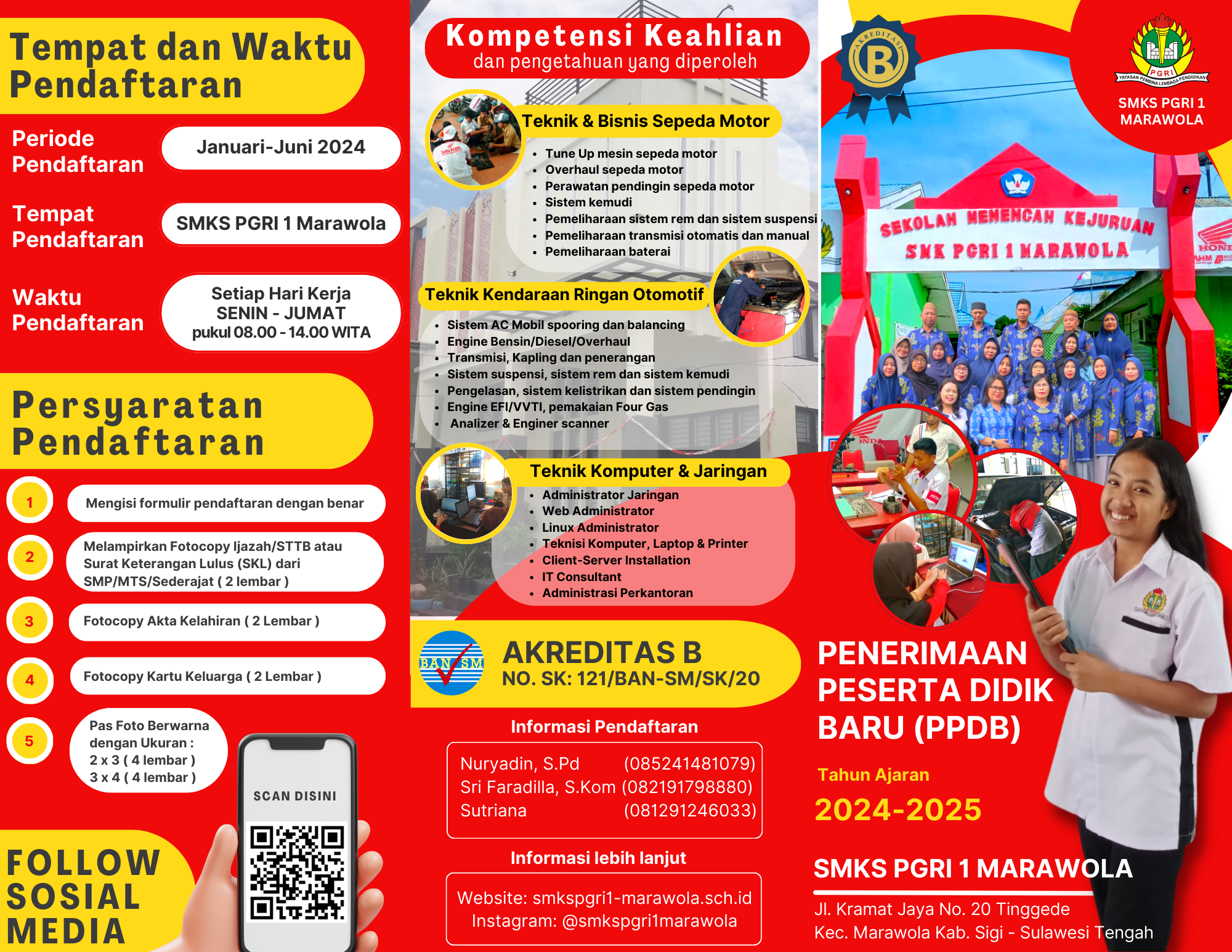 Super User BERITA 16 Desember 2023 Dilihat: 508 PENERIMAAN PESERTA DIDIK BARU SMKS PGRI 1 MARAWOLA TAHUN AJARAN 2024/2025 Cetak Previous article: Dokumentasi Kegiatan Sebelum Next article: PENERIMAAN PESERTA DIDIK BARU Berikut